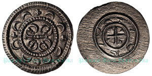 Stephen I. (997-1038) : denár EK: 1/1G C.I.: 2 H.: 1/a ÉH:- Ag 0,82 g Hátlapon retrográd (fordított) körirattal. RR! goo ...