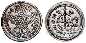 Solomon (1063-1074) : denár EK: 6/4 C.I.: 22 H.: 17 ÉH: 10 Ag 0,87 g Ebben az állapotban ritka! FDC! ...