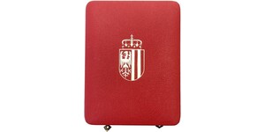 Etui für das Großes Goldenes Ehrenzeichen des Landes, mit Leder bezogenes Etui mit Goldaufdruck, Seltenes Etui! R - - I ...