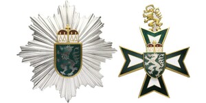 Bruststern zum Komtur, 1. Typ, Bronze versilbert, Corpus grob brillantiert, Auflagen vergoldet und emailliert; RS mit kl ...