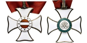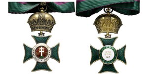 Ritterkreuz mit Kriegsdekoration und Schwertern. Brustdekoration, Silber beidseitig emailliert, altösterr. punziert (im ...