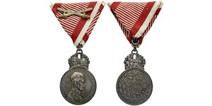Silberne MVM/ Karl I. AR keine Randmarke, am orig. Band mit Schwertern leichte Alters und Tragespuren; - II ...