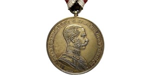 Konvolut von 2 Stück Bronzen und Silberne MVM Modell Kaiser Franz Josef Bronze vergoldet mit Tragespuren; Silber, mit Ra ...