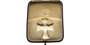 Etui für ein Marianer Kreuz, Ausführung mit Damenmasche, Braunes Lederetui der Firma Rothe Wien, leichte Altersspuren R ...