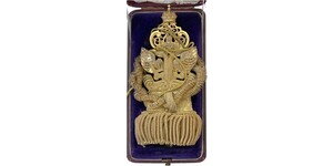 Kämmererschlüssel FJI - 1. Typ (vor 1867) in kompletter Ausstattung: Schlüssel mit Doppeladler und Initialen FJI, Messin ...