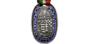 Ungarisches Kriegsfürsorgeamt Silberne Medaille mit blauemailliertem Schriftband, Silber punziert Hersteller GAS, Scheid ...