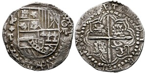 8 Reales Potosi Assayer T, Quadranten des Kreuzes vertauscht Prägeschwäche am Rand - KM 10 - s.sch. ...