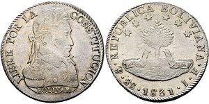8 Soles 1831 PTS JF Potosi Prachtexemplar, Erstabschlag! - KM - f.stplfr. ...