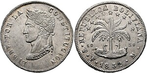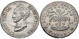 8 Soles 1851 F-M Potosi RV kleiner Schrötlingsfehler am Rand AV leichte Stempelkorrosionspuren, - KM 109 - vzgl.+ ...