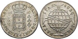 960 Reis 1810 R Rio de Janeiro AV kl. Stempelriss leichte Überprägungsspuren, - KM 307.3 - vzgl.+ ...