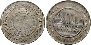 200 Reis 1900 Schrötlingsfehler leichte Prägeschwäche, RV winz. - KM 493 - vzgl.+ ...