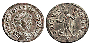 Lot 021/167 :: EMPIRE ROMAIN. DIOCLETIEN, 20 novembre 284 - 1er mai 305. Lyon, 289. Antoninien, argent, 4,23 g.