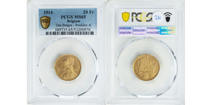 :: Belgium. 20 Francs 1914. French Text. PCGS MS65