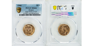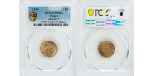 Lot 46/42 France :: France. 10 Francs Coq 1914. PCGS MS63
