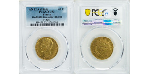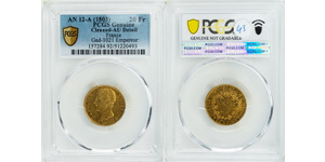 Lot 46/43 France :: France. 20 Francs AN 12-A (1803). Empereur. PCGS Cleaned - AU Details
