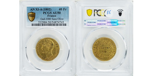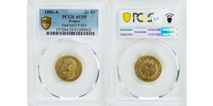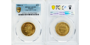 Lot 46/44 France :: France. 20 Francs 1806-A. PCGS AU55