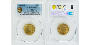 Lot 46/50 France :: France. 20 Francs 1811-A. PCGS MS62