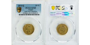 Lot 46/57 France :: France. 20 Francs Napoleon 1814-Q. PCGS XF45