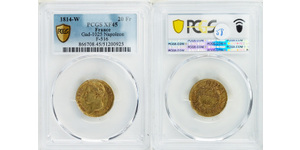 Lot 46/58 France :: France. 20 Francs Napoleon 1814-W. PCGS XF45