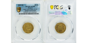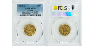 Lot 46/59 France :: France. 20 Francs Louis XVIII 1815-A. PCGS AU58