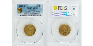 Lot 46/60 France :: France. 20 Francs Louis XVIII 1815-B. PCGS AU53