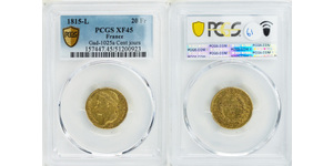 Lot 46/61 France :: France. 20 Francs Napoleon 1815-L. PCGS XF45