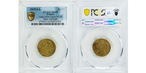 Lot 46/62 France :: France. 20 Francs Louis XVIII 1815/4-L. Fleur Verticale. PCGS XF45