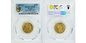 Lot 46/64 France :: France. 20 Francs 1817-A. PCGS AU55