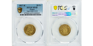Lot 46/65 France :: France. 20 Francs 1817-K. PCGS XF45