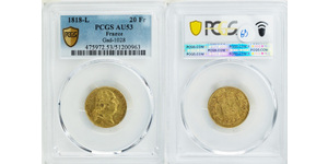 Lot 46/69 France :: France. 20 Francs 1818-L. PCGS AU53