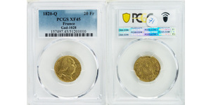 Lot 46/71 France :: France. 20 Francs 1820-Q. PCGS XF45