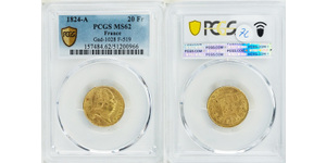 Lot 46/72 France :: France. 20 Francs 1824-A. PCGS MS62