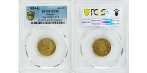 Lot 46/73 France :: France. 20 Francs 1824-Q. PCGS XF45