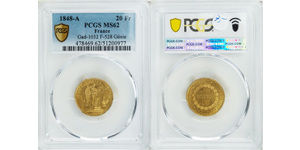Lot 46/75 France :: France. 20 Francs Génie 1848-A. PCGS MS62