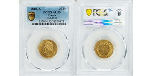Lot 46/76 France :: France. 20 Francs 1840-A. PCGS AU55
