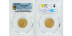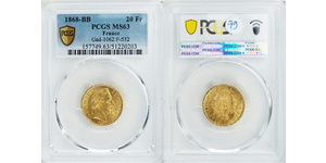 Lot 46/79 France :: France. 20 Francs 1868-BB. PCGS MS63