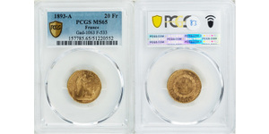 Lot 46/40 France :: France. 10 Francs Cérès 1895-A. PCGS MS65