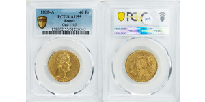 Lot 46/104 France :: France. 40 Francs 1828-A. PCGS AU55