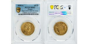 Lot 46/105 France :: France. 40 Francs 1830-A. PCGS MS62