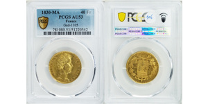 Lot 46/106 France :: France. 40 Francs 1830-MA. PCGS AU53