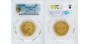 Lot 46/107 France :: France. 50 Francs 1858-BB. PCGS AU55