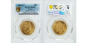 Lot 46/108 France :: France. 50 Francs 1862-A. PCGS MS63