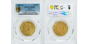 Lot 46/112 France :: France. 50 Francs 1867-A. PCGS MS62