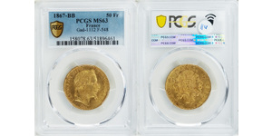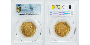 Lot 46/114 France :: France. 50 Francs 1867-BB. PCGS MS63