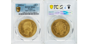 Lot 46/118 France :: France. 100 Francs 1855-A. PCGS MS61