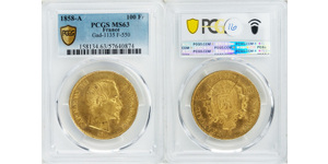 Lot 46/120 France :: France. 100 Francs 1858-A. PCGS MS63