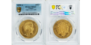 Lot 46/121 France :: France. 100 Francs 1858-A. PCGS MS64