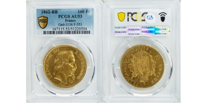 Lot 46/123 France :: France. 100 Francs 1862-BB. PCGS AU53