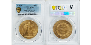 Lot 46/132 France :: France. 100 Francs Génie 1879-A. PCGS MS64