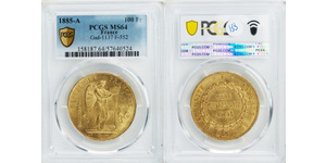 France. Third Republic (1870 - 1940). 100 Francs Génie 1885-A. PCGS MS64. Paris. Mintage: 2,984 pieces only. The highest ...